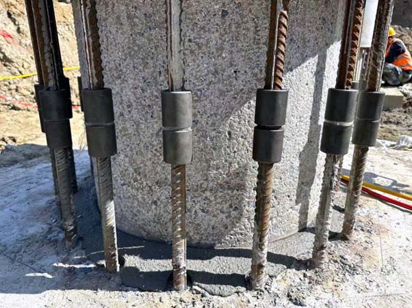 With the team of 2 operators, it takes approximate 45 minutes to complete splicing this round expressway pylon. There is no waiting time required after the splicing, next step works are carrying on immediately.