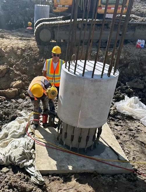 With the team of 2 operators, it takes approximate 45 minutes to complete splicing this round expressway pylon. There is no waiting time required after the splicing, next step works are carrying on immediately.